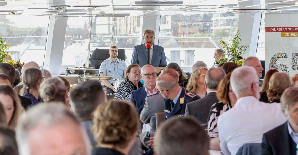 Mit diesen Worten begrüßte Bundesvorsitzender Bernd Krämer bei strahlendblauem Himmel und sommerlichen Temperaturen rund 150 Gäste an Bord der MS Alexander von Humboldt zur großen Jubiläumsfeier des Bundeswehr-Sozialwerks (BwSW) e.V. in Berlin. Denn auf den Tag genau vor 65 Jahren legten gerade einmal 21 Gründungsmitglieder im Sitzungssaal der Ermekeilkaserne in Bonn den Grundstein für eine Solidargemeinschaft, die heute über 100.000 Mitglieder, ein Haushaltsvolumen von 30 Millionen Euro und Ferienanlagen an 19 Standorten in Deutschland, den Niederlanden, Österreich und Italien umfasst.